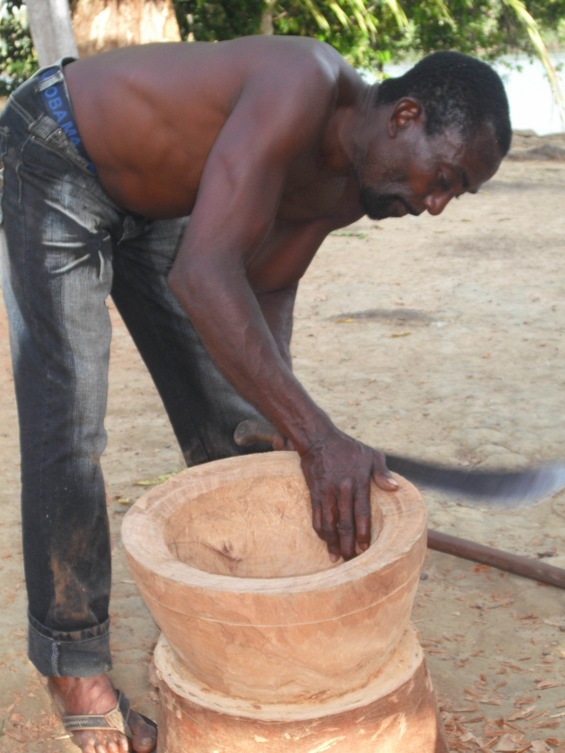 Marron Oost-Suriname houtsnijwerk. De gestilleerde motieven hebben soms een erotische betekenins.